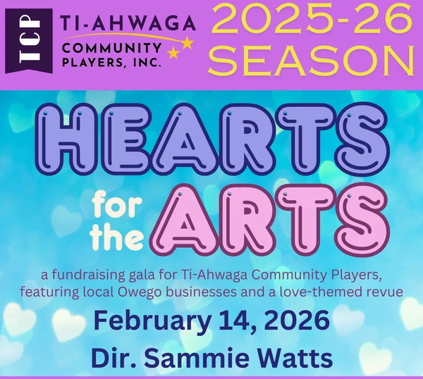 Ti-Ahwaga Community Players’ annual fundraising gala is here! This year on February 14th, the theme is “love of all kinds”. This gala will include live entertainment, food, drinks, raffles, and more! We are excited to feature multiple local Owego businesses and many local performers as well! We hope you join us for a magical night full of love!